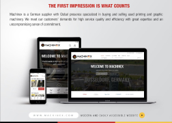 Machinex is a German supplier specialized in the purchase - sale and overhaul of used printing and graphics machines, serving all countries in the world. We pride ourselves on our quality of service and ability to consistently deliver safe and successful deal making for entrepreneurs and partners. Our main goal is to ensure transparency and security in purchases and sales for both buyer and seller.